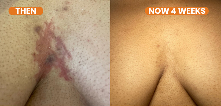 Plagued by Keratosis pilaris and dark spots, she endured relentless itching and persistent discomfort. But after applying Bumpz n' Stumpz Topical Eraser alongside the soothing Turmeric Root Bar Soap, her skin began to transform—within just a few days, the irritation subsided, and a newfound clarity emerged.